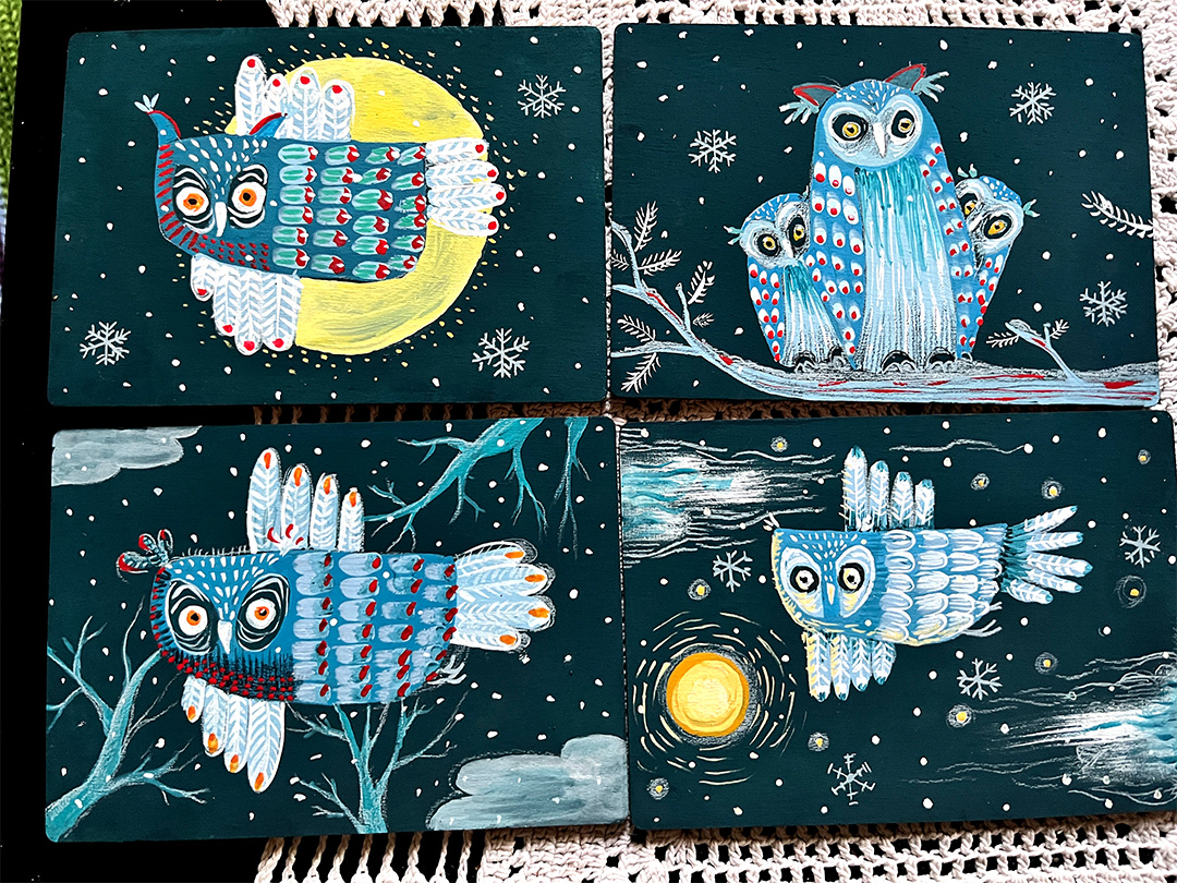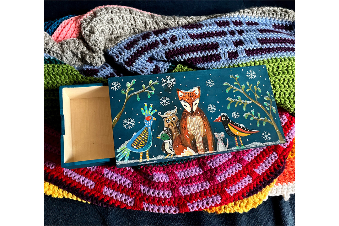 In dieser Gallery sehen Sie gehäkelte, sowie gestrickte Handarbeiten und volkstümliche Malerei auf Holzgegenständen.
