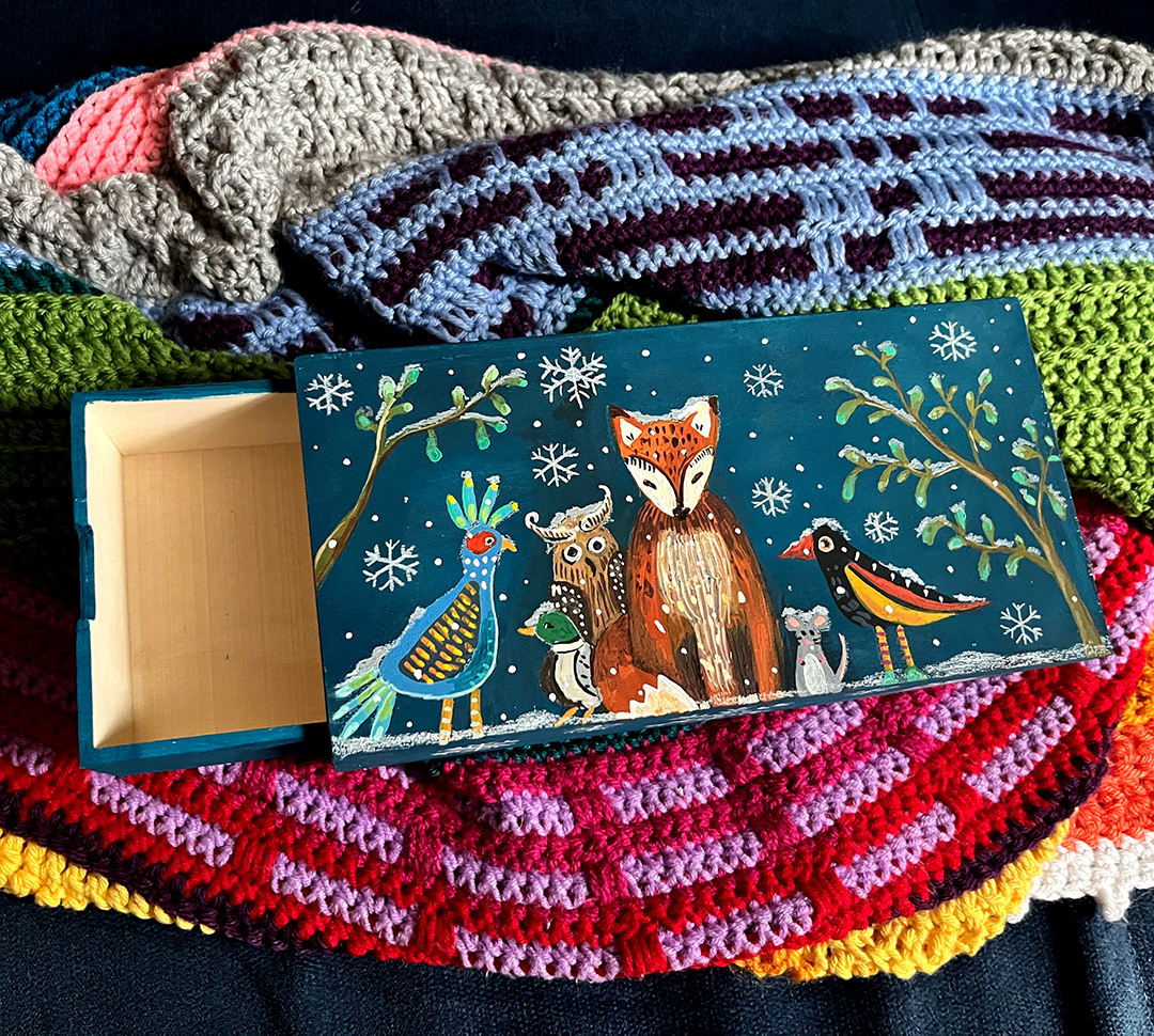In dieser Gallery sehen Sie gehäkelte, sowie gestrickte Handarbeiten und volkstümliche Malerei auf Holzgegenständen.